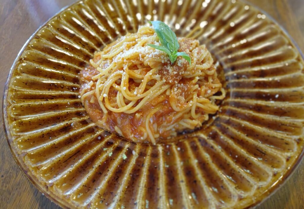 一皿目に運ばれてきたのは、トマトの香りが立つ「スパゲッティ・ポモドーロ」。